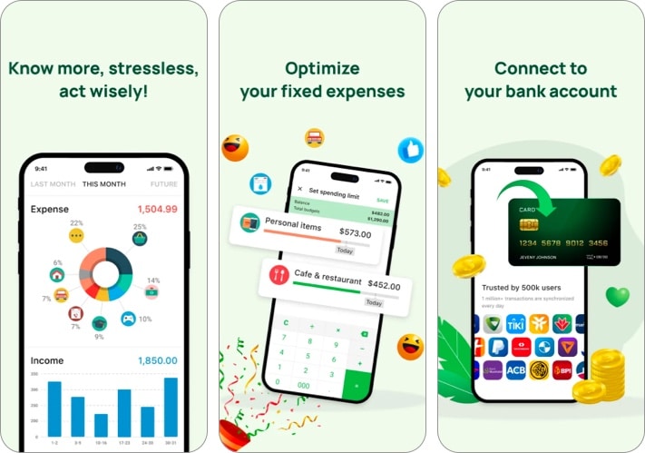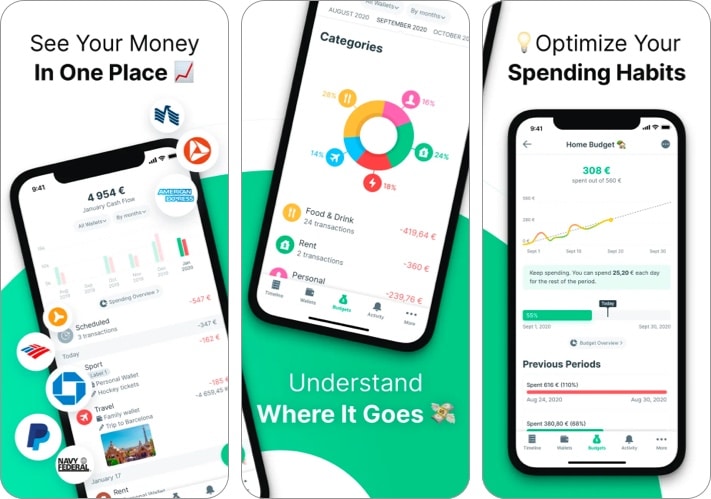 Toplam gider, toplam gelir, her kategoriye göre harcama veya bekleyen faturalar gibi okunması kolay raporlarla, paranızın nereden geldiğini ve nereye gittiğini anlamanıza yardımcı olur. Ayrıca banka hesaplarınızı bağlayabilir ve tüm banka raporlarını tek bir yerde görebilirsiniz. Bir ton özelliğin yanı sıra, uygulama verilerinizi banka düzeyinde güvenlik ile şifreler.