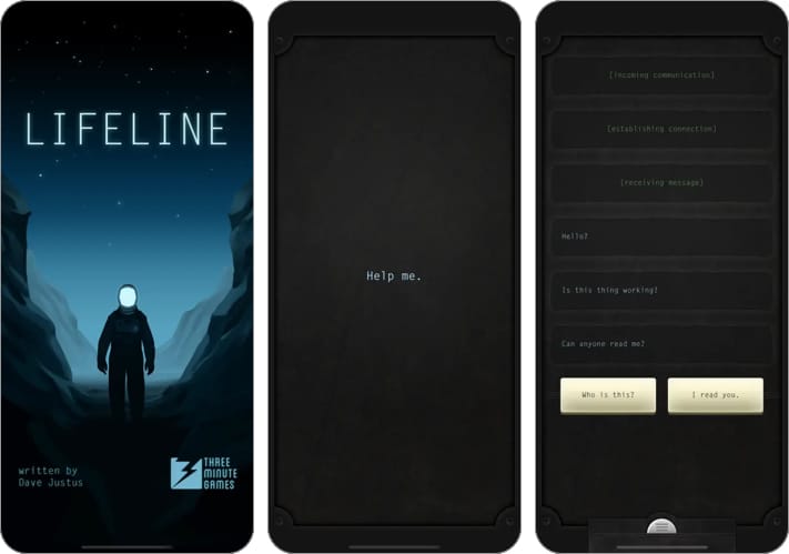 Gerçek zamanlı olarak ortaya çıkan bir oyun oynamak istiyorsanız, Lifeline mükemmel bir seçimdir. Uzaylı bir ayda mahsur kalan bir astronot olan Taylor'ın ayakkabılarındaki oyuncuya sahiptir. Mürettebatınızın geri kalanının nerede olduğu hakkında hiçbir fikriniz yok ve iletişimciniz sadece sizinle bağlantı kurabiliyor.