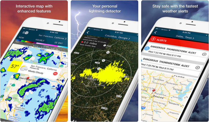 Weatherbug olmadan en iyi hava durumu uygulamalarının hiçbir listesi tamamlanmayacaktır. Sizin için önemli olan tüm bilgilere anında erişmenizi sağlayacak etkileşimli bir harita bulunur.