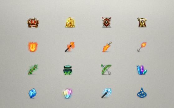Adıyla tahmin edebileceğiniz gibi, Krallık ikonlarıBir fantezi oyununun öğelerinden esinlenerek, balta, şapka, altın, elmas, kalkan, kılıç, büyü ve daha fazlası gibi simgelerle birlikte. Benzer şekilde, bu simge seti50'den fazla simgeİstediğiniz gibi kullanabileceğiniz. Örneğin, balta simgesini farenizin imleci olarak kullanabilirsiniz.
