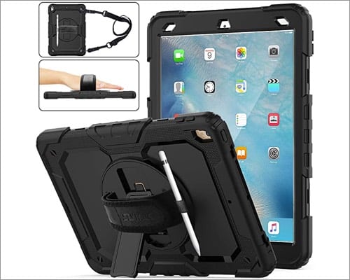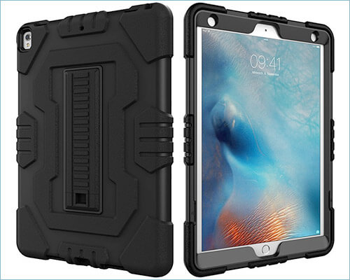 Öncelikle, sert PC ve yumuşak TPU tarafından desteklenen çift katmanlı kasa ile donatılmıştır. Böylece, iPad'iniz kazara düşmelere ve çiziklere karşı ekstra bir koruma sağlar.