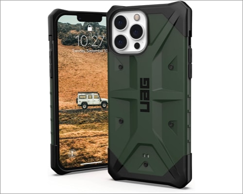 İPhone 13 Pro Max için en iyi şok koruma durumunu istiyorsanız, aramanızın UAG vakalarında sona erebileceğini düşünüyorum. Marka en iyi şok koruma vakaları yapmakla bilinir, özellikle Pathfinder serileri MIL standart koruması sunar. UAG, 4.8 metreye kadar düşüşlerden korunmaktadır.