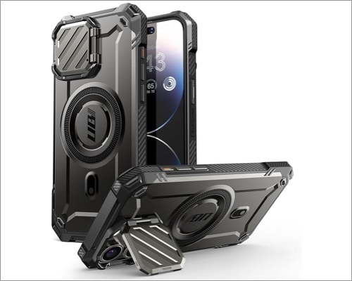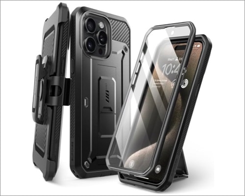 Güçlü bir yapıyı süsleyen Suppase Unicorn Beetle Pro, en iyi iPhone 15 Pro Max sağlam kılıflarından biridir. Bu sağlam kasanın sunulan askeri dereceli 20ft düşüş koruması, değerli akıllı telefonunuzun her türlü haksız damla ve kaymadan güvenli olmasını sağlar. Ek olarak, TPU tampon kenarları maksimum darbe direnci sağlar.
