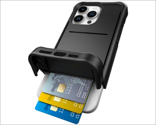 Bir cüzdan kılıfı istiyorsanız, ancak iPhone 15 Pro Max'inizin hantal görünmesini istemiyorsanız, Spigen'in Slim Armor CS vakasına bir göz atmalısınız. Çift katmanlı hava yastık teknolojisi ve şok emici bir TPU iç mekanının yardımıyla, cihazınızı kazara damlalardan koruyabilir.