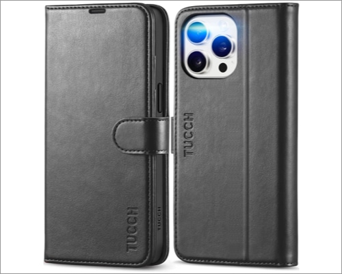 İyi görünümlü ama ucuz bir deri kasa arıyorsanız, Tucch cüzdan kılıfı sizin için mükemmel olabilir. Bu cüzdan kasasında, dört karta kadar ve gerekirse para cebinde nakit sığabilen dikişli birinci sınıf deri PU kasası bulunur. Folio davası, videoları izlemek istediğinizde de bir kickstand olarak ikiye katlanıyor, bu da uygun.