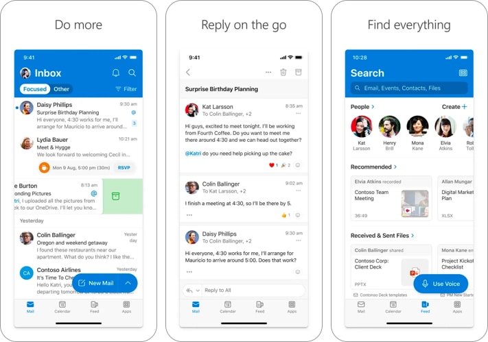 Outlook, konuşma iş parçacığı, arama ve filtreleme, kurallar ve daha fazlası gibi özelliklerle çalışmanızı kolaylaştırır. Ayrıca, yerleşik takvim özelliği randevularınızı ve toplantılarınızı yönetmenize yardımcı olur. Kişiler özelliği, tüm kişilerinizi saklayarak e -posta göndermenizi veya toplantıları planlamanızı kolaylaştırır. Ayrıca, Outlook görevleri ve not özellikleri hayati görev planlamasını sağlar.
