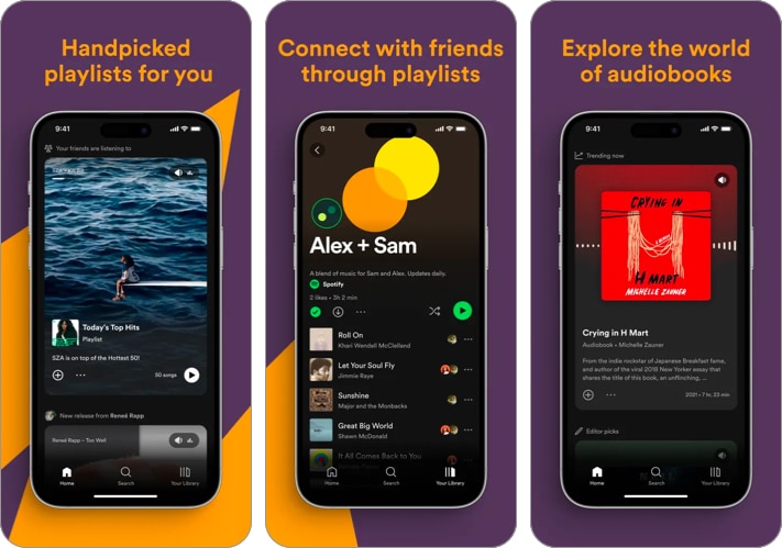 Kendi beğendiğiniz şarkılarınızı oluşturabilir veya Spotify'ın sizin için yapmasına izin verebilirsiniz. Uygulama, beğendiğiniz kişiselleştirilmiş günlük karışımları iyileştirmek için dinleme seçeneklerinizi analiz eder. Sadece dokunun ve oynayın. Buna ek olarak, şarkıları yer imlerine ekleyebilir, bir döngüde oynayabilir veya şarkı sözleriyle karaoke yapabilirsiniz. Ayrıca Spotify, şarkıları indirmenize ve istediğiniz zaman çevrimdışı oynamanıza olanak tanır. Hatta burada sesli kitapları dinleyebilirsiniz.