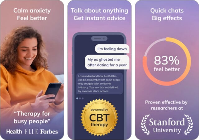 Buna ek olarak, uygulamada farkındalık, olumlu düşünme ve duygu yönetimi üzerine odaklanmış birkaç etkinlik bulabilirsiniz. Ayrıca, uzman terapistler tüm CBT terapi seanslarını küratörlüğünü yaparlar, bu nedenle olumsuz sonuçlar hakkında endişelenmenize gerek yoktur. Oturumlarınızı ihtiyacınız olduğunda planlayabilirsiniz.