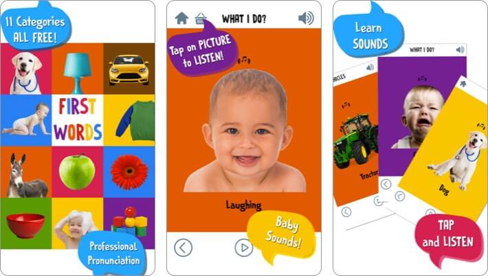 Güzel tasarlanmış görüntülere sahip, 120'den fazla ortak kelime öğretmeyi amaçlıyor. Profesyonel telaffuz, çocuğunuzun kelimeleri doğru bir şekilde telaffuz edebilmesini sağlar. Dahası, göz alıcı animasyonlar ve hayvanların, bebeklerin ve araçların gerçek sesleri öğrenmeyi gerçek bir sevinç haline getirir.