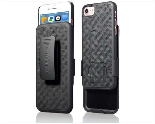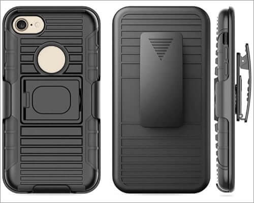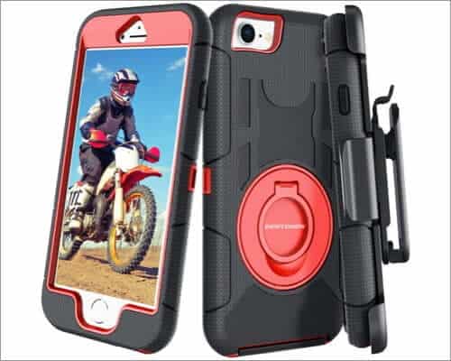 İPhone SE 2. nesil için bu sağlam sert arka kasaya göz atın. İş, seyahat veya oyun sırasında rahatlık taşımak için bir yan montaj kemeri klipsli döner kılıf içine klipsler.