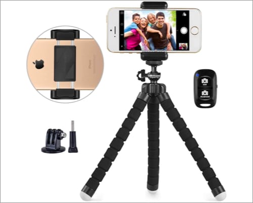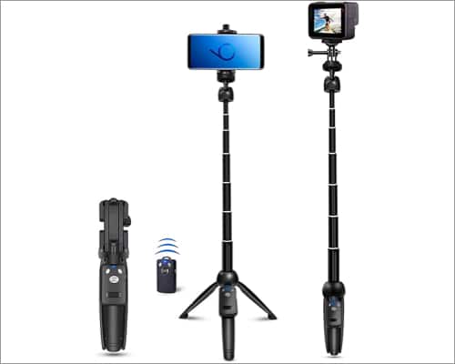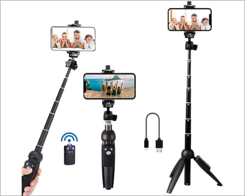 Bir selfie çubuğu olarak ikiye katlanan iPhone tripodlarından bahsetmişken, Bluehorn taşınabilir 40 inç selfie sopa iyi bir seçenektir.
