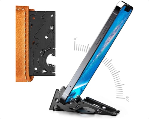 Tripod'u katladığınızda, bir kartın şekline ve boyutuna dönüşür. Bu, taşımayı o kadar kolaylaştırır ki, bunu bir cüzdana koyabilir ve bir tripodun etrafında taşımanın zorluğunu unutabilirsiniz. Ayrıca uyumludur ve 12.5mm'den daha ince telefonlarla çalışır.