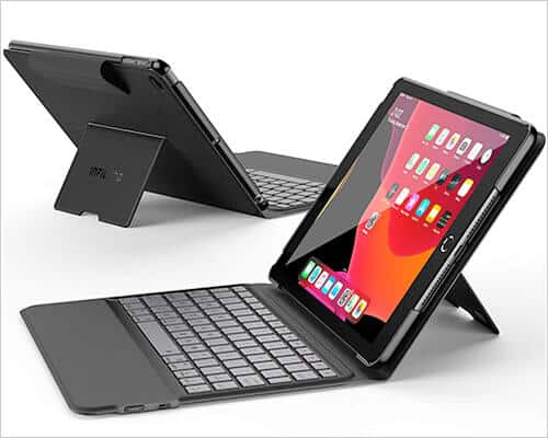 Sert plastik ve PU deri kullanımı, şoka katlanmak için gövdeyi güçlendirmiştir. Kullanışlı bir klavyeden fazlası ile, şüphesiz iPad 7 için bütçe dostu klavye kapaklarından biridir.