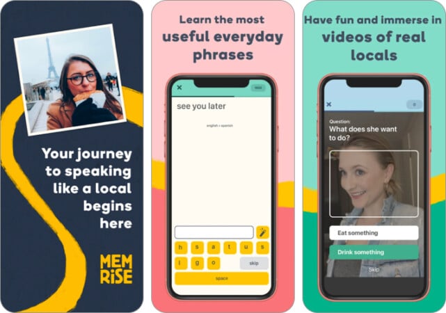 Memrise, belirli bir yönü nedeniyle iPhone'lar için en iyi dil öğrenme uygulamalarından biridir. Bu husus, anadili konuşmacıların videoları aracılığıyla öğrenmektir.