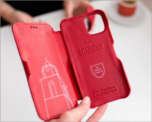 Kamerada 0,5 mm yükseltilmiş kenarları ve ekran üzerinde 1.6mm yükseltilmiş kenarları vardır. Ayrıca, deri kasanın içinde en fazla dört kart veya biraz nakit saklanabilir. Ayrıca tutmak iyi hissettiriyor ve zarif görünüyor. Bununla birlikte, MagSafe aksesuarları ile uyumlu değildir, ancak Qi özellikli kablosuz şarj cihazları ile iyi çalışır.