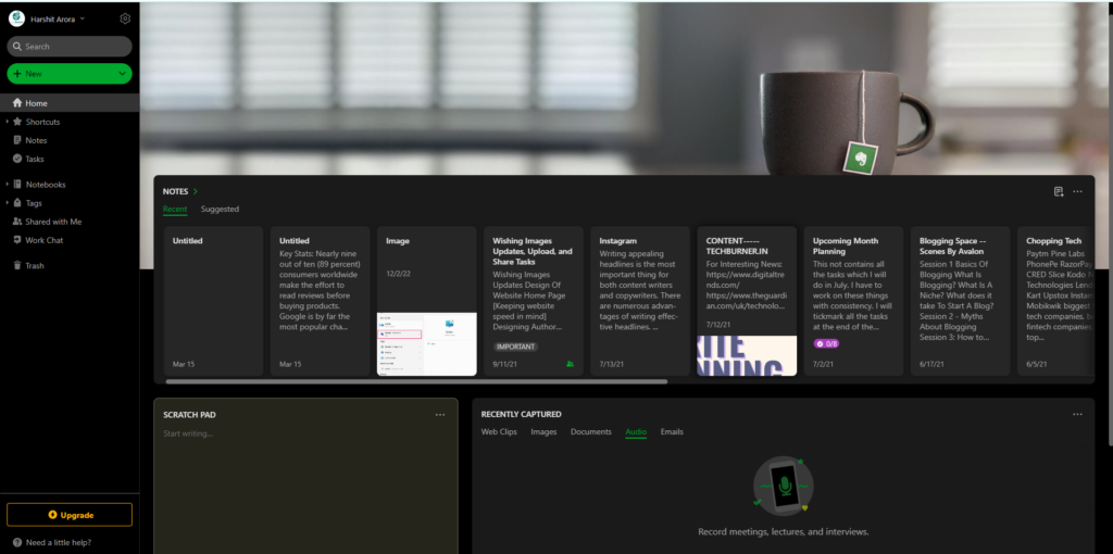 Windows 11 listesi için en iyi not alan uygulamalarımızdaki son not alma yardımcı programıEvernote. Evernote Kullanılabilecek popüler bir not alma uygulamasıTüm fikirleri ve düşünceleri not edintek bir çatı altında. Bununla birlikte,Tüm görevlerinizi yönetin ve düzenleyin. Birincil işlevleri hakkında konuşmadan önce, önce kullanıcı arayüzünü tartışalım.