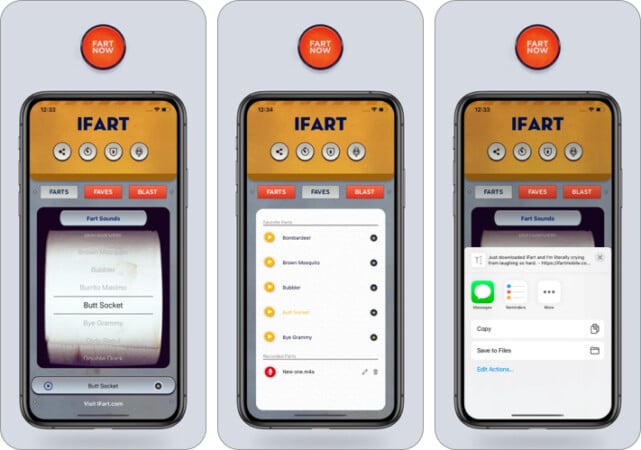 Ifart, geliştiricinin dediği gibi, “osuruk uygulamalarının Godfarter” dır. Uygulama 2008 yılında interneti fırtına ile aldı ve osuruk şakaları için en popüler uygulamalardan biri olmaya devam ediyor. Uygulama, güvenlik osuruk, sinsi saldırı, rekor kırma, fave osuruk, patlama ve bonus osuruk paketi gibi farklı osuruk modları ile yığılmış.