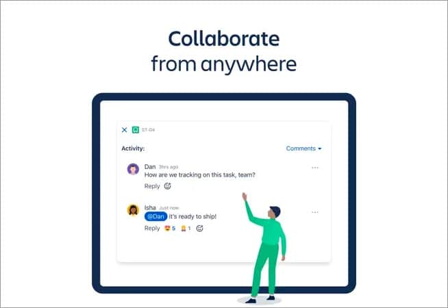 Jira Cloud, DevOps, ITSM, Hizmet Teslimatı ve Geliştirme ekipleri gibi uzak ekipler için bir işbirliği çözümü sunar. Görevleri oluşturmak, güncellemek, düzenlemek, planlamak, izlemek ve analiz etmek için ödevleri izleyebilir, projeleri denetleyebilir ve birlikte çalışabilirsiniz. Kanban ve Scrum gibi çevik proje yönetimi çözümleri ve yapılacaklar listelerine sahip basit görev izleme panoları sunar.