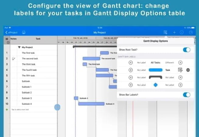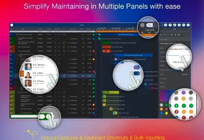 Daha iyi üretkenlik için jest tabanlı zaman çizelgesi ölçeklendirme ve kaydırmayı beğendim. Ayrıca, iş dökümü yapısı proje görevlerinin hiyerarşisinin düzenlenmesine yardımcı olur. Uygulama, PDF ve XML dosyalarını buluttan içe aktarmanıza ve dışa aktarmanıza olanak tanır. Ayrıca, doğrudan Airprint aracılığıyla belirli parçaları veya tüm projeyi yazdırabilirsiniz.