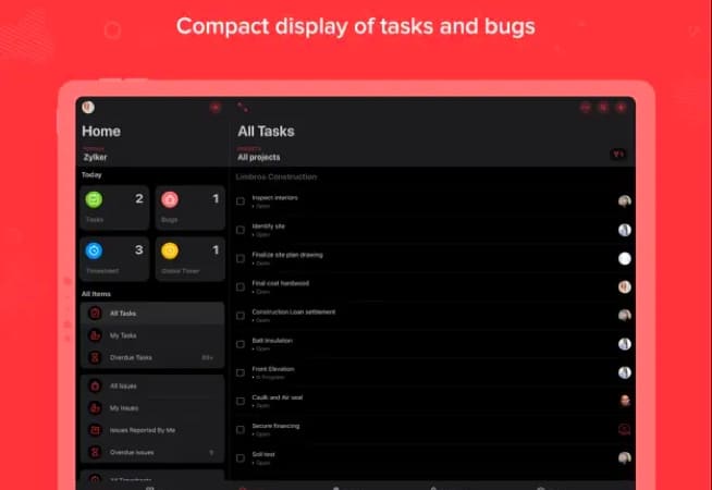 Zoho, uyarlanabilir görev yönetimi için Zoho Projeleri de dahil olmak üzere birçok organizasyonel uygulama sunmaktadır. Projenizin operasyonlarını planlayabilir, görevleri dağıtabilir, kaynakları kontrol edebilir, zaman çizelgelerindeki ilerlemeyi izleyebilir, programdaki görevleri tamamlayabilir ve hatta sorunları rapor edebilirsiniz.