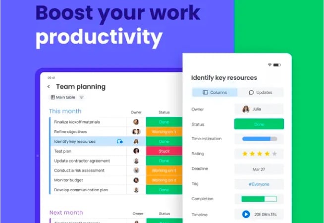 Görevlerinize atananları, vadeli tarihleri, takipçileri, kontrol listelerini, öncüllerini ve dosyaları ekleyerek verimliliği artırabilirsiniz. Ayrıca, ekibiniz paylaşılan elektronik tablolar üzerinde işbirliği yapabilir, düzenleyebilir ve yorum yapabilir. En iyi yanı, işi hızlandırmak ve zaman kazanmak için otomatik güncellemeler ve onaylar göndermesidir.