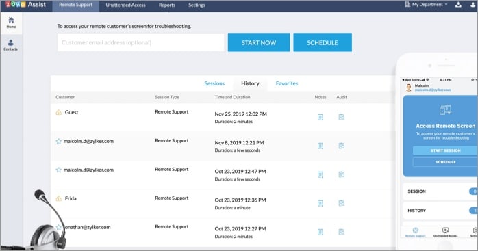 Müşteri sorunlarını gidermek ve zamanında yardım sağlamak için masaüstlerine, dizüstü bilgisayarlara, sunuculara ve mobil cihazlara güvenli ve zahmetsizce erişmenizi ve yönetmenizi sağlar. Dahası, güvenlik ve gizlilik sağlar. Aynı zamanda sorunsuz çalışır ve arayüzde gezinmesi kolaydır.