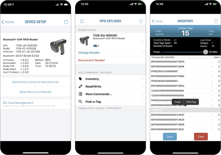 RFID Explorer size yakındaki etiketlerin listesini hızla sağlayacaktır. Uygulama 1128 Bluetooth UHF okuyucu ile iyi çalışır. Bu uygulamanın yardımıyla etiketler oluşturabilir ve yapabilirsiniz. Uygulamanın bellek bankasındaki etiketleri de özelleştirebilirsiniz.