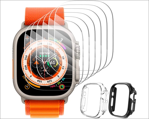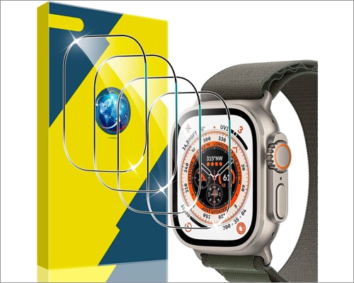 Pahalı Apple Watch Ultra'nız için hepsi bir arada bir koruyucu bekçi istiyorsanız budur. Newways, 6 koruyucu temperli cam film, 2 adet tampon ve kolay kurulum kiti sunuyor. Ayrıca, koruyucu 9H sertleştirilmiş film HD netliği sağlar ve doğrudan güneş ışığında bile görünürlüğü azaltmaz. Ayrıca, marka yüzeye plazma oleofobik bir kaplama uygulayarak pürüzsüz, hassas bir doku verdi.