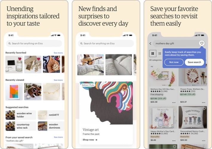 9. Etsy: Ev, Stil ve Hediye - El yapımı ürünler için en iyi uygulama