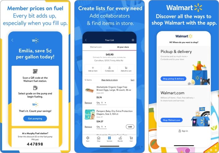 Walmart uygulaması tonlarca brownie puanı ile geliyor. Uygulama, çevrimiçi sipariş vermenizi sağlar ve mağaza pick-up sunar. Uygulamayı mağazada ödeme yapmak ve kendinize dokunmasız kasanın yararını elde etmek için de kullanabilirsiniz.