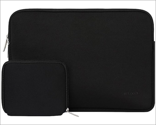 Bu mosiso dizüstü bilgisayar örtüsünün en iyi açılan iki fermuarı, MacBook Air'inize düşme veya çizme korkusu olmadan kolayca erişebilmenizi sağlar. Ayrıca, bu ürünün farenizi ve kulaklığınızı dizüstü bilgisayarla taşımanıza yardımcı olacak küçük bir depolama çantası vardır. Neyse ki, küçük kese, daha büyük muadili ile aynı renk ve dokuya gelir. Böylece, ekstra bir kuruş ödemeden her zaman aksesuarlarınızla ikiz yapabilirsiniz.
