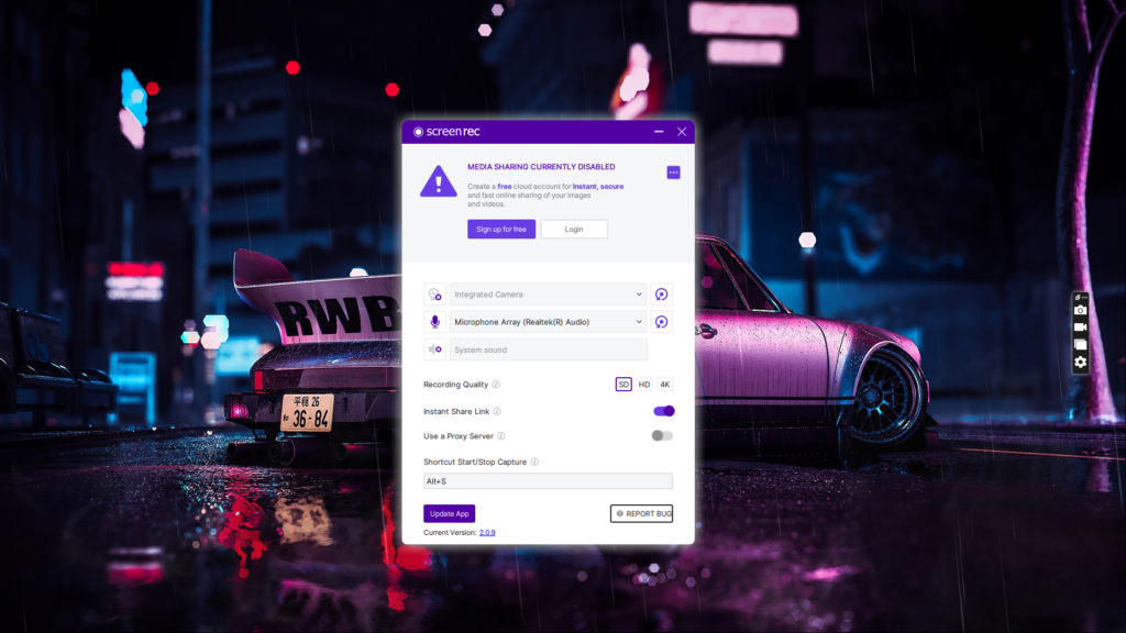 Bunun dışında da yapabilirsinizAnında Paylaş bağlantısını alınEkran görüntüsünü biriyle paylaşmak. Son olarak, ScreenRec yazılımı da size izin verirWindows 11 PC'nin ekranını kaydedin, ses ve web kamerası. PC'nizin ekranını SD, HD ve hatta 4K'da kaydedebilirsiniz.