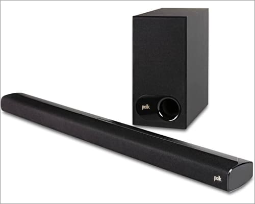 Polk Audio, kablosuz bir subwoofer dahil olmak üzere ultra slim ses çubuğu sunar. Beş tam menzilli hoparlör, derin baslarla güzel zengin sesler üretiyor. Ayrıca, özel bir ses Dolby Digital ile teknolojiyi ayarlar, ses kalitesini artırır ve ses gecikmelerini azaltır.