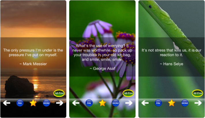 Bu uygulama emrinizle birlikte, bir sürü anti-stres alıntısı okuyabilirsiniz. Sadece çöküşlerin hayal kırıklığını silkmeye yardımcı olmayacak, aynı zamanda daha iyi bir yol bulmanıza yardımcı olacaklar. Ayrıca, bu değerli sözleri kurtarabilir ve onları Facebook'ta arkadaşlarınızla paylaşabilirsiniz.