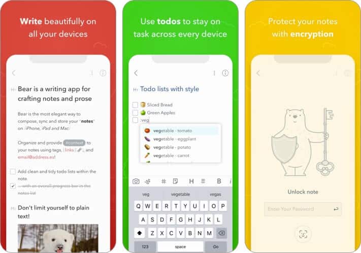 Bear daha önce bir not alma uygulamasıdır. Uygulama sezgisel kullanıcı arayüzü ile bilinir ve Hamburger menüsünde notlar ve etiketler içeren kaygan görünümlü bir kullanıcı arayüzü kullanır. Bear notlarını kullanarak şirketin kullanıcı arayüzüne yakından dikkatine kolayca tanık olabilirsiniz.