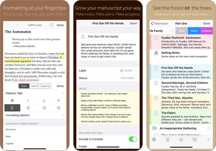 Scrivener Mac, iPhone, iPad ve Windows'ta mevcuttur.
