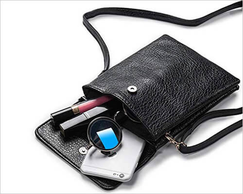 Çanta, iPhone X'inizi veya hatta iPhone 8 Plus'ınızı korumanıza izin vermek için büyük bir bölmeye sahiptir. Kredi kartlarınızı ve nakit parayı iç yuvaların içinde de saklayabilirsiniz. Konfor seviyenize dayanarak, kayışa ince ayar yapabilirsiniz. Hepsi bu değil; Yajama dört renkte gelir: mavi, kırmızı, siyah ve kahverengi.