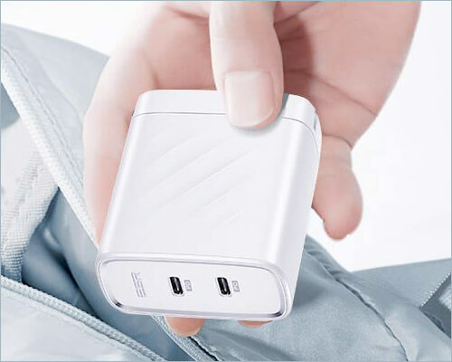 Şarj cihazında iki USB-C bağlantı noktası vardır, bu nedenle aynı anda iki USB-C cihazı şarj edebilirsiniz. Kompakt ve taşınabilir tasarım, bu duvar şarj cihazını her yere götürmenizi sağlar. Şarj cihazı, Apple'ın stok 5W adaptöründen üç kat daha hızlıdır.
