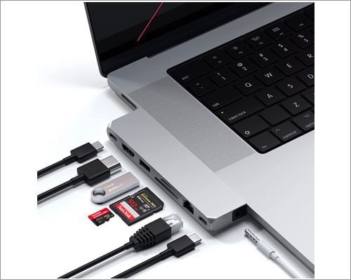 MacBook Pro'nuzda büyük dosyalarla çalışmak zorundaysanız, daha fazla veri aktarım hızına ihtiyacınız vardır. Bu gibi durumlarda, Satechi Pro Hub Max adaptörü sizin için doğru seçimdir. USB Type-A bağlantı noktası, USB-C bağlantı noktası, bir Ethernet bağlantı noktası, bir HDMI bağlantı noktası, 3.5mm jak ve güvenli bir kart yuvası ile birlikte gelir.