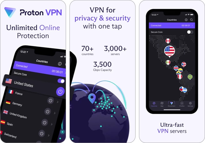 3. Proton VPN -İOS için en güvenli VPN hizmeti