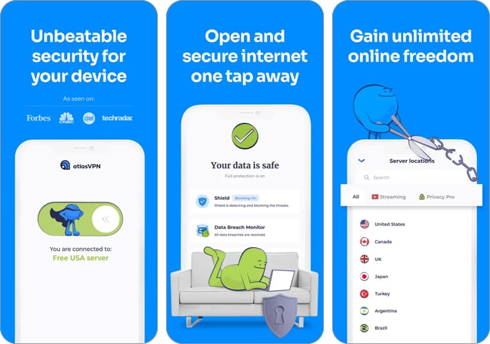 10. Atlas VPN -İPhone için özellik açısından zengin VPN