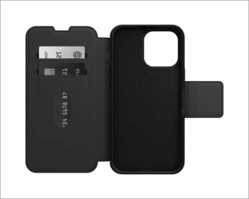 Otterbox'tan gelen bu premium deri folyo kılıfı, kart sahibi yuvalarının içinde iki kart depolamanızı sağlar. Daha iyi koruma için kasanın altında bir polikarbonat kabuk var, ancak deri dokunmak için yumuşak hissediyor. Folio kasasını kapattığınızda manyetik mandal tatmin edici hissediyor. Test edildi ve herhangi bir askeri sınıf standardından 3 kat daha güçlü olduğuna inanılıyor.