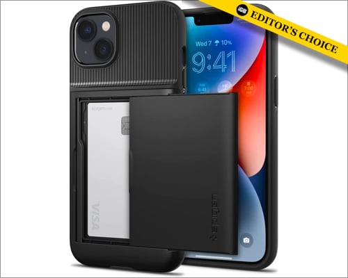 Hacimli vakalar istemiyorsanız ve iPhone 14 Plus veya 14 Pro Max'iniz için en iyi korumaya ihtiyacınız varsa, Spigen'in Slim Armor Cüzdan Kılıfına bakabilirsiniz. İPhone'unuzu kazara damlalardan korumak için çift katmanlı ve hava yastığı teknolojisine sahiptir. Şok emici bir TPU iç ve polikarbonat dış cephesi ile birlikte gelir.