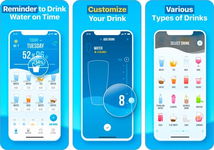 Bir başka popüler seçenek olan uygulama, cinsiyete, kilonuza ve ülkenize (sıcak/soğuk) göre doğru su tüketim seviyesini öneren günlük bir su alım hesaplayıcısına sahiptir.