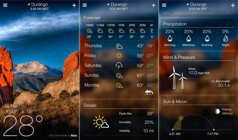 En üstteİPhone 7 Plus için En İyi Hava Durumu Uygulaması. Bu uygulama, gelecekteki on beş dakikalık hava güncellemesini bize bildiren meteorolojik değişkenlerin hava oldukça etkili yolunu izlemenizi sağlar.