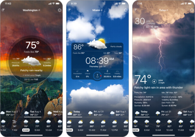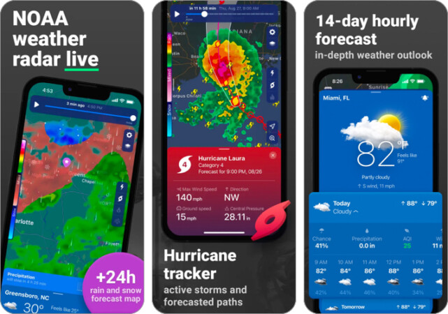 Weather, basit bir arayüzde basit gerçek zamanlı güncellemeler sağlayan başka bir uygulamadır. Uygulama, etrafınızda gerçek zamanlı iklim davranışının uydu görünümünü sunan radar teknolojisine sahiptir.