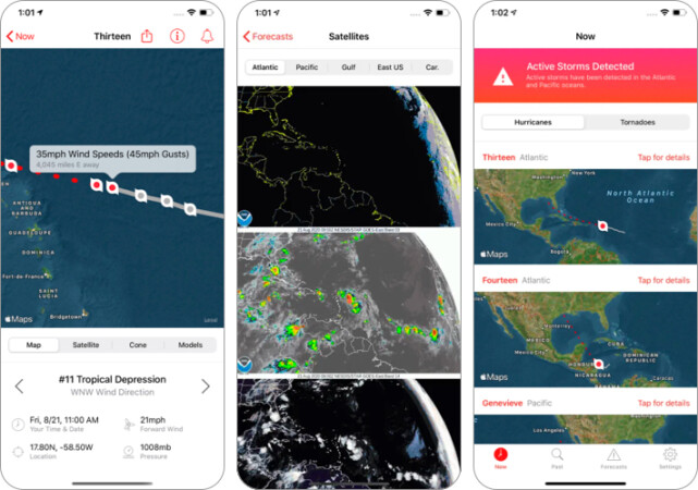 Tahmin modeli bölümü ayrıca kasırga tahminleri ve fırtına yönleri için uydu görüntülerini de göstermektedir. Kasırga izleyicim hiçbir bedeli geliyor, ancak burada birkaç reklam ve premium bir paket için gitmedikçe sizi erteleyebilir.