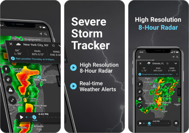 Storm Radar, havanın çevrenizde nasıl değiştiğini izlemek için birçok gelişmiş özellik sağlar. Uygulama, doğru tahminler almak için Ulusal Okyanus ve Atmosfer İdaresi'nden (NOAA) hava verilerini maden ettiği için güvenilirdir. Ayrıca uyarılar ayarlayabilir ve şiddetli hava bilgileri hakkında bilgi sahibi olabilirsiniz.