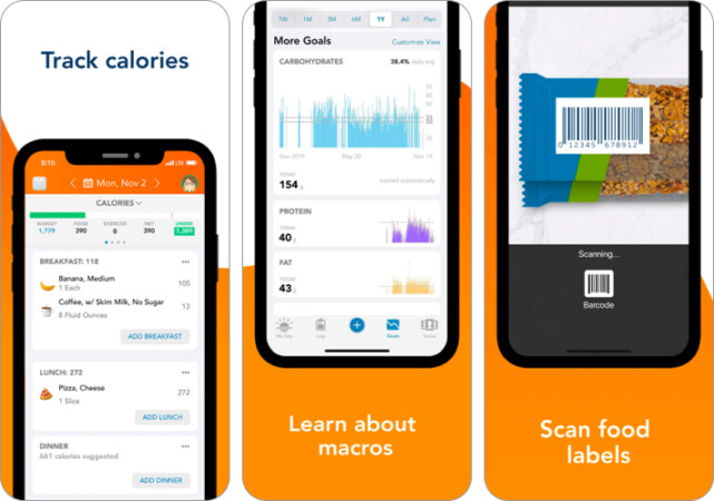 Uygulamalara başlamak için birkaç veri parçası girmeniz gerekir. Yapıldıktan sonra, hedefinize bağlı olarak bir kalori sayısı alacaksınız. Bununla birlikte, ücretsiz sürüm makrobesin tüketimi hakkında bilgi sağlamaz. Gıda tüketiminizi izlemeye yardımcı olmak için barkodları tarayabilir veya kalori sayısını ekleyebilirsiniz.