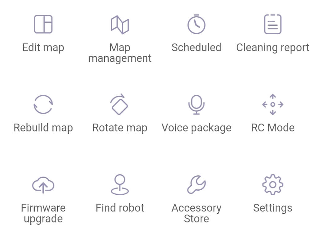 Uygulama aracılığıyla kontrol edebileceğiniz diğer bazı özellikler ayarlamak, daha düşük çarpışma modunu ve halı modunda artan emme gücünü sağlayan ve ses hacmini değiştirme ve LED düğmesi ışığını açık ve kapatma.